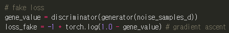 loss_fake = -1 * torch.log(1.0 - gene_value) # gradient ascent
