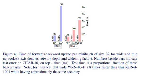 CIFAR에서 최고의 성능을 낸 WRN-28-10가 thin ResNet-1001보다 1.6배 더 빠르다.