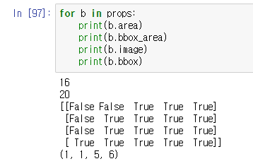 props라는 변수로 regionprops 객체를 저장하였는데요.