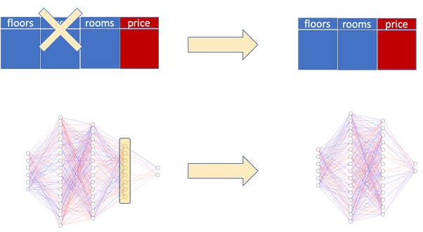 그림 1에서, 위에 나타난 표 그림은 feature ablation trial을 나타내고 있으며, 아래 나타난 layer 그림은 layer ablation trial을 나타낸다. 예를 들어, layer ablation trial에서, 우리는 base model의 마지막 hidden layer를 제거하고, 결과 모델을 학습시키고, 이것의 성능을 확인하게 된다.